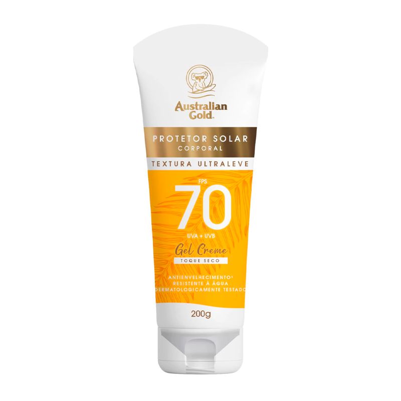 O Protetor Solar Corporal FPS70, da Australian Gold, foi desenvolvido especialmente para combater o envelhecimento precoce e a poluição, além de ser resistente a água e possuir toque seco, te protegendo contra os raios UVB/UVA, dá pra acreditar?