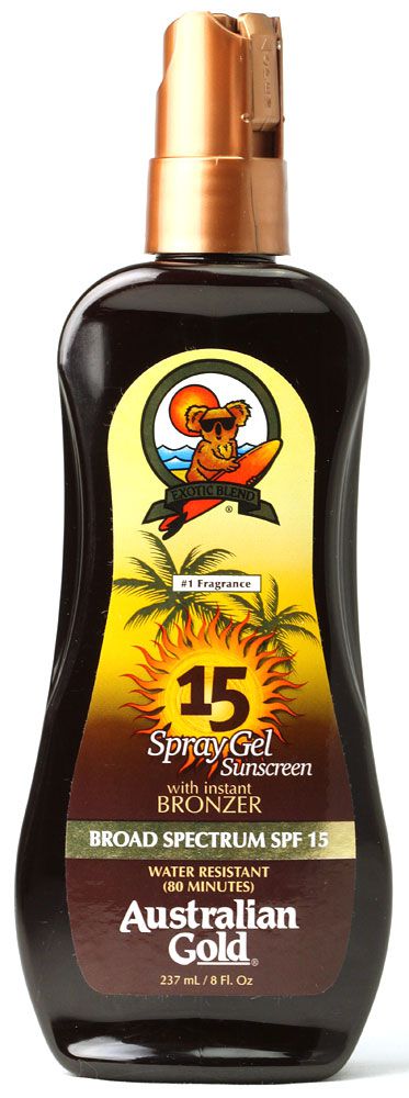Aplique Bronzeador Australian Gold Instant Bronzer Spray Gel FPS 15 abundantemente 15 minutos antes da exposição ao sol. Reaplique sempre que necessário.