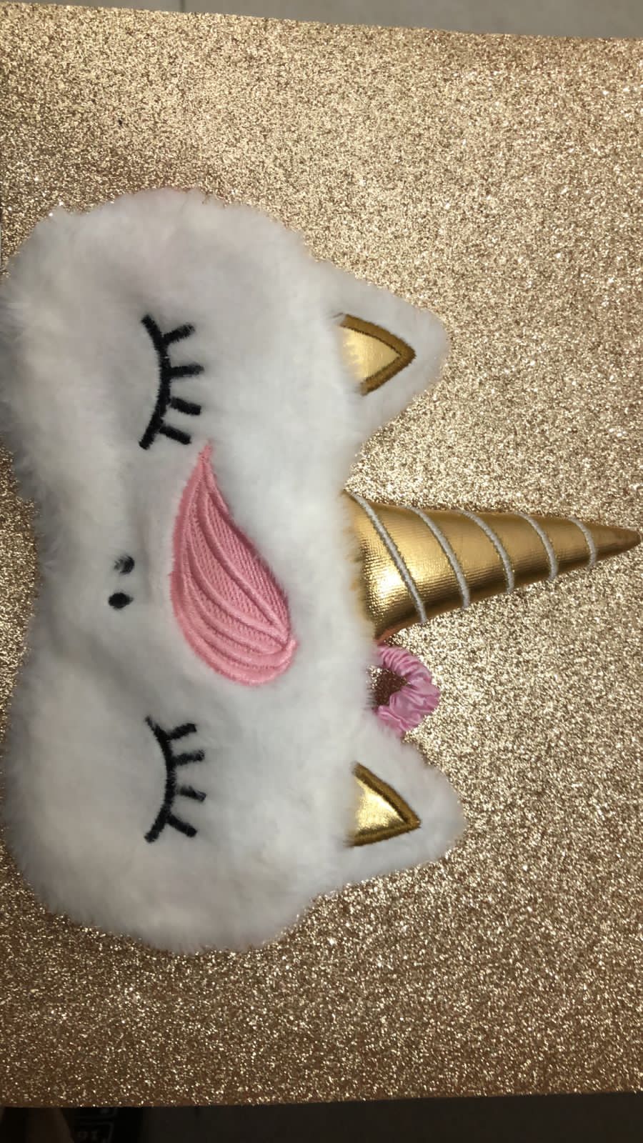 Mascara tapa olho infantil em pelúcia de unicornio rosa com elástico e forro de tricoline. Um charme para usar ou presentear as crianças em datas comemorativas.