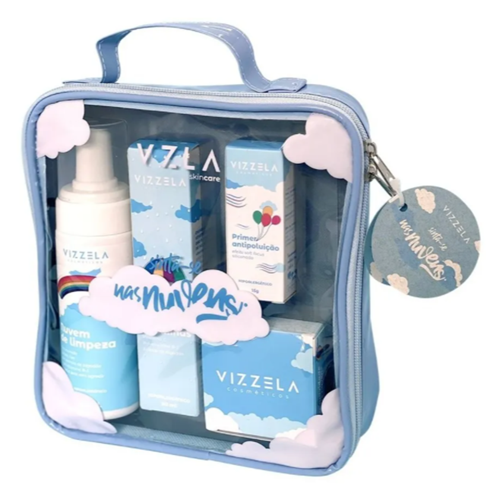 KIT NAS NUVENS, COM; CHUVA DE VITAMINAS, WATER GEL HIDRATANTE E PRIMER ANTI POLUICAO