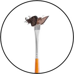 O pincel 09 tem o formato chanfrado pequeno, indicado para aplicação de sombra, delineador em gel e correção de sobrancelhas.