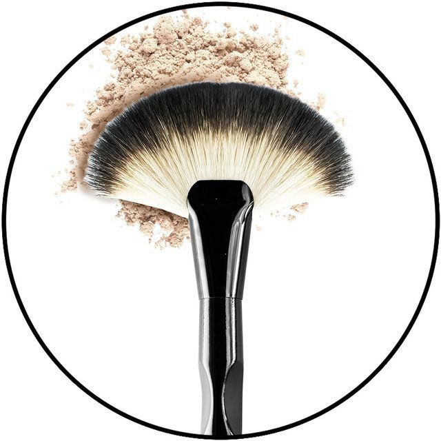 Pincel em formato leque com pelos longos e macios, indicado para retirar excessos. De pó, sombra e para aplicação de iluminador.