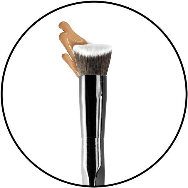 Pincel com design 3D inovador indicado para aplicação de base. Alcança um ângulo de 360º com uma cobertura precisa e uniforme.