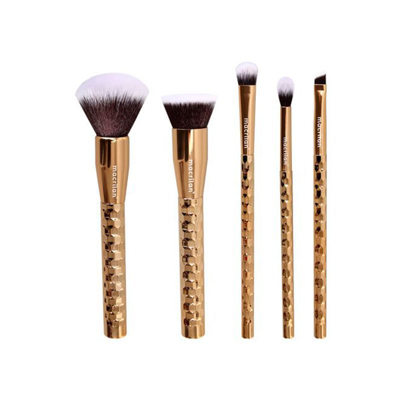 Kit com 5 Pincéis Profissionais Precious Gold Macrilan ED006