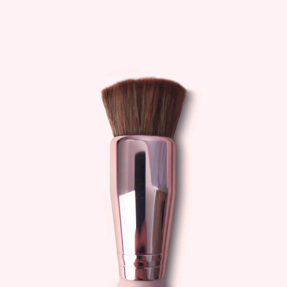 Com cerdas densas e macias, nosso pincel desliza suavemente sobre a pele, espalhando a base de maneira uniforme e sem esforço. Sua forma arredondada e ergonômica se adapta perfeitamente aos contornos do rosto, garantindo uma aplicação precisa em cada traço.