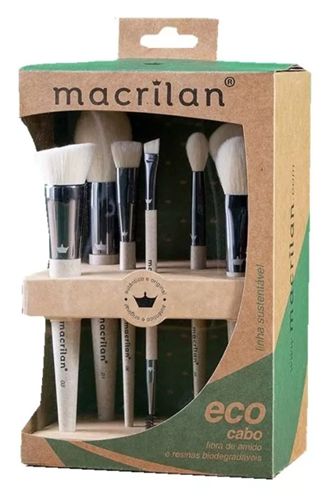 Kit Eco feito com 7 pincéis profissionais para aplicação de maquiagem, tanto com produtos líquidos ou cremosos, como produtos em pó. Este kit sustentável é fabricado com fibras de amido e resinas biodegradáveis, de alta qualidade, resistência, durabilidade e redução percentual do impacto ao meio ambiente. Possui cerdas super macias e em formatos especiais para um acabamento suave e impecável.