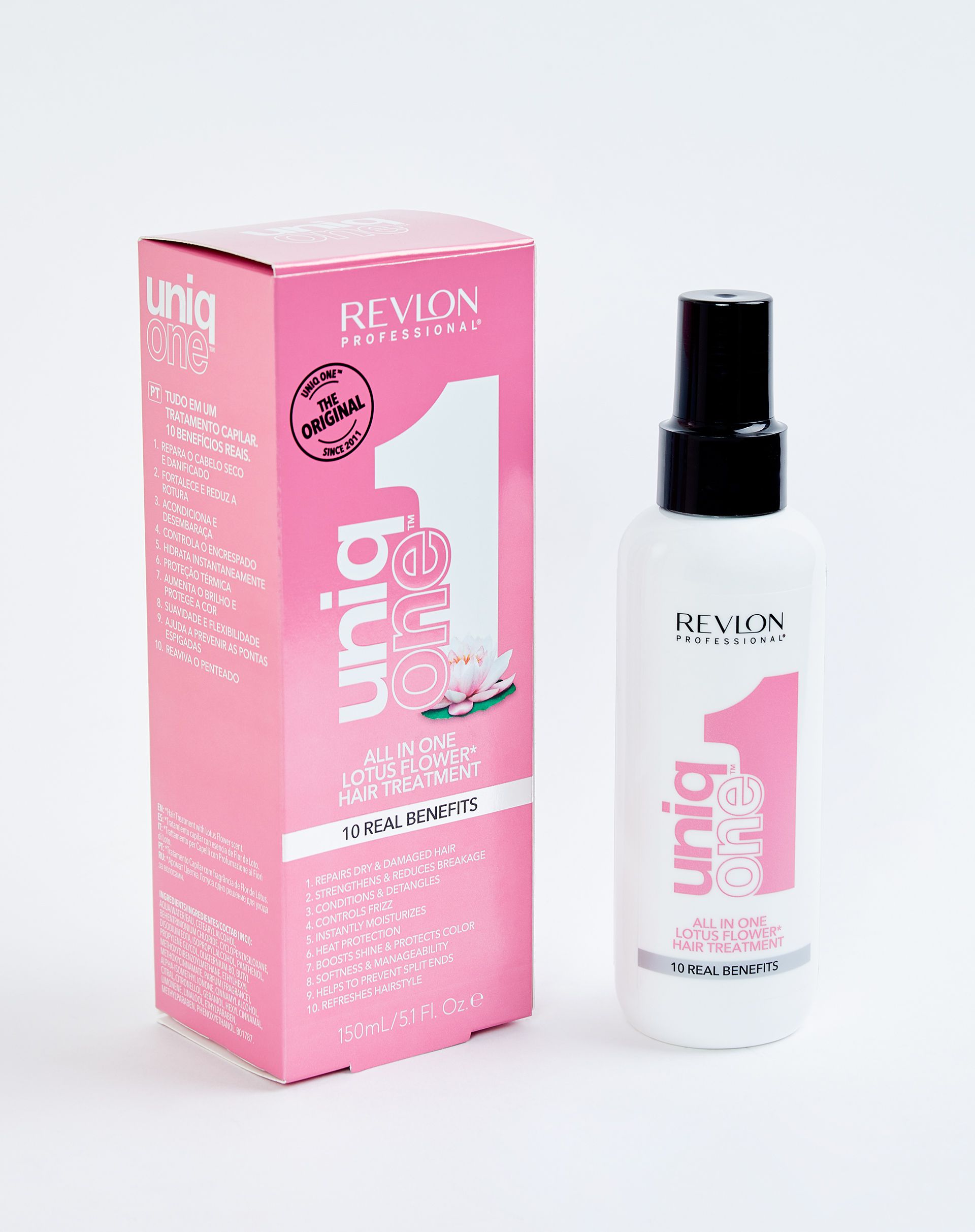 Leave-in com 10 benefícios reais em um só produto, para todos os tipos de cabelo. O Revlon Professional Uniq One Coconut cuida, trata, protege, controla, dentre outras ações. Seu poder de hidratação e nutrição mata a sede dos fios! Isso sem falar que por proteger das radiações solares, é perfeito para se usar todos os dia, principalmente no nosso verão tropical. Vencedor do Prêmio Especial Inovação da revista Nova/Cosmopolitan, ele é realmente uma revolução em matéria de cuidados para o cabelo! O Uniq One Coconut, da Revlon Professional, une 10 benefícios de tratamento e finalização em um só produto. Ele se diferencia do Revlon Professional Uniq One por possuir uma suave fragrância de coco. Suas ações são: 1. Repara os fios ressecados e danificados: possui agentes hidratantes e de condicionamento que melhoram a textura e a maleabilidade dos fios. 2. Controla o frizz: com o tempo seco ou úmido, protege das agressões ambientais e evita que o cabelo arrepie. 3. Protege do calor do secador e da chapinha: forma uma película ao redor da fibra capilar, protegendo ela das altas temperaturas. 4. Suaviza e deixa um toque acetinado: possui agentes condicionantes poderosos, amaciando e controlando. 5. Protege do sol e mantém a cor: com filtros UVA e UVB, extremamente leves, protege sem deixar o cabelo pesado. Evita a oxidação causada pelo sol que faz cor desbotar. 6. Facilita a escovação e o uso da prancha: com o cabelo mais suave e macio, ele facilita o deslizar a prancha e escovar. 7. Desembaraça: deixa os fios soltos e desembaraçados. 8. Mantém o penteado por mais tempo. 9. Previne as pontas duplas. 10. Controla o volume natural dos cabelos.