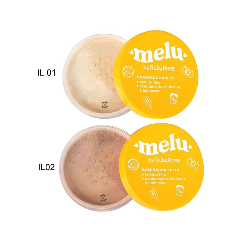 O Iluminador Solto Melu tem textura fina, acabamento cintilante e luminoso.