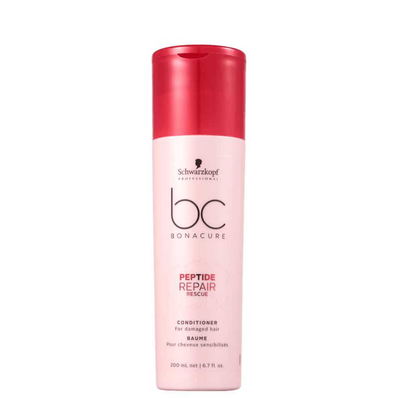 Condicionador para cabelos danificados. Schwarzkopf Professional BC Peptide Repair Rescue Conditioner fortalece, suaviza e sela as cutículas para garantir desembaraço, elasticidade e maleabilidade. Ajuda na reconstrução dos fios sem vida, porosos e propensos a quebra.