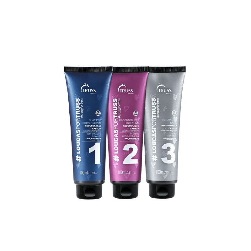 Kit #LoucasPorTruss realizar uma recuperação rápida no cabelo sensibilizado para devolver a vitalidade perdida durante a coloração, descoloração, relaxamento ou alisamento. E mais: ele dá densidade e recupera todos os danos causados das fibras capilares. Em apenas 7 minutos durante o banho, seu cabelo é limpo, hidratado e nutrido, ganhando corpo, luminosidade e movimento natural.
