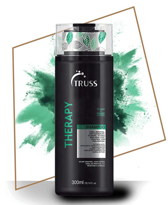 Refrescante, Truss Therapy Shampoo possui ação antifúngica, de forma a combater a caspa e as descamações. Ele também hidrata, regula a oleosidade e estimula a circulação sanguínea para ajudar no crescimento dos fios. Com ele, você sente seu couro cabeludo purificado, com redução de até 95,8% das caspas e até 75% da oleosidade excessiva.